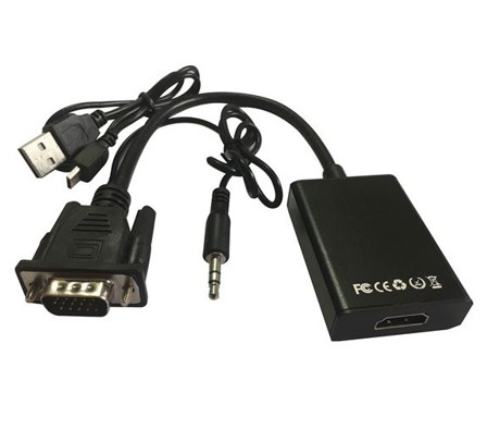 Es un convertidor activo (analógico a digital) que toma una señal de entrada VGA (video analógico) y la convierte en una señal de salida HDMI (audio y video digital).