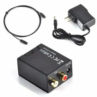 Convierte una señal de audio digital óptica (Tos link) a una señal de audio analógica estéreo RCA.